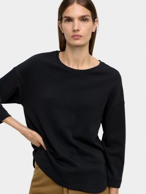 Cotton sweatshirt with front embroidery, ribbed edges and long sleeves.