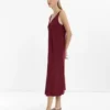 An airy fluid midi crafted to move gracefully. Slender straps frame deep V-necklines at both the front and back, while a center seam adds subtle structure to the flowing silhouette. Lower side openings enhance ventilation and create a light, breezy feel that flatters movement. This versatile piece is ideal for warm-weather events, city strolls, or layered looks with a lightweight jacket. The effortless elegance and minimal construction make it an excellent travel companion and a refined addition to any capsule wardrobe.