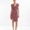 A textured asymmetric mini dress with draped detailing and a flattering V-neckline. The dropped sleeve adds relaxed elegance to the silhouette, creating a refined yet effortless look.