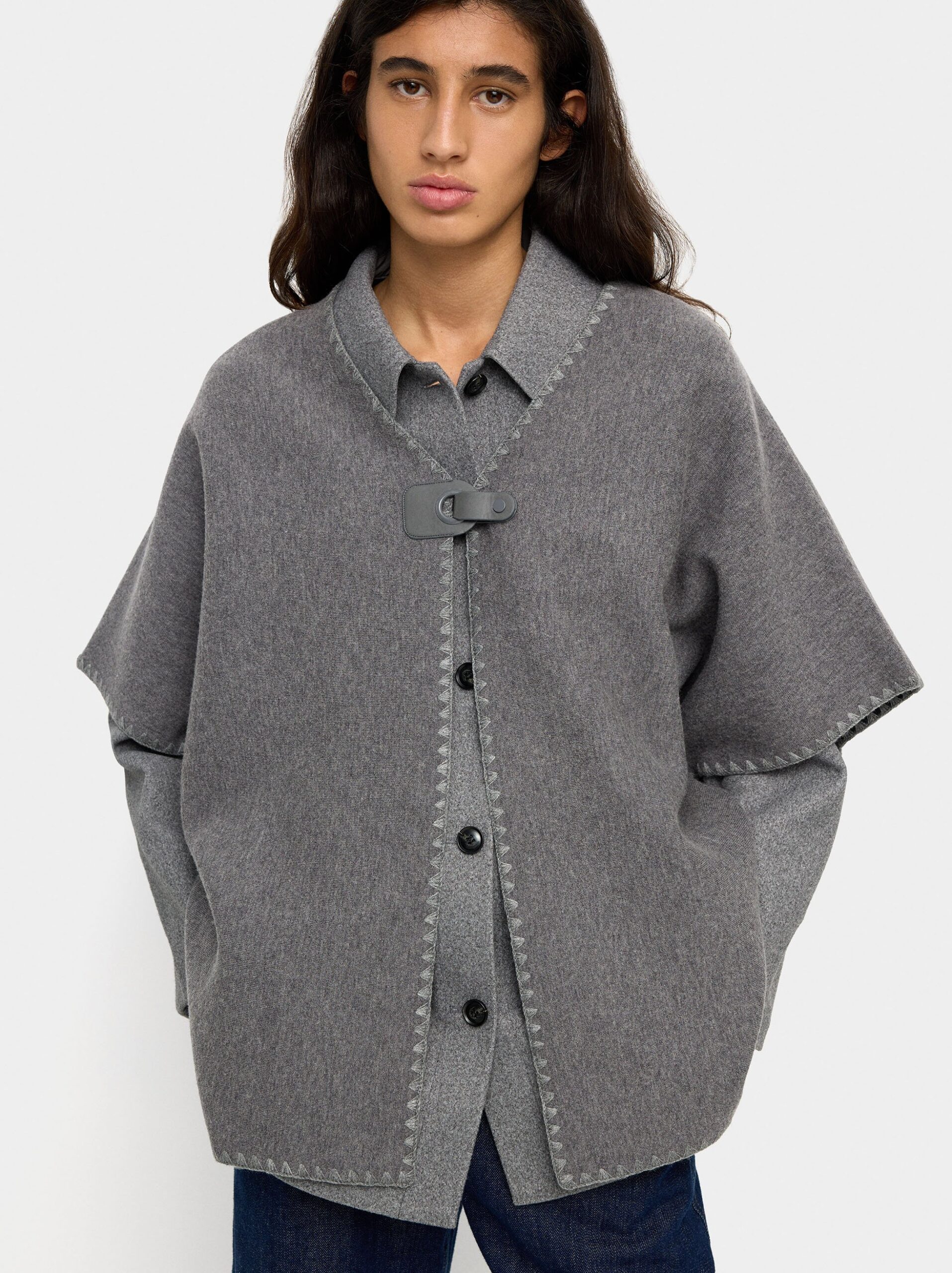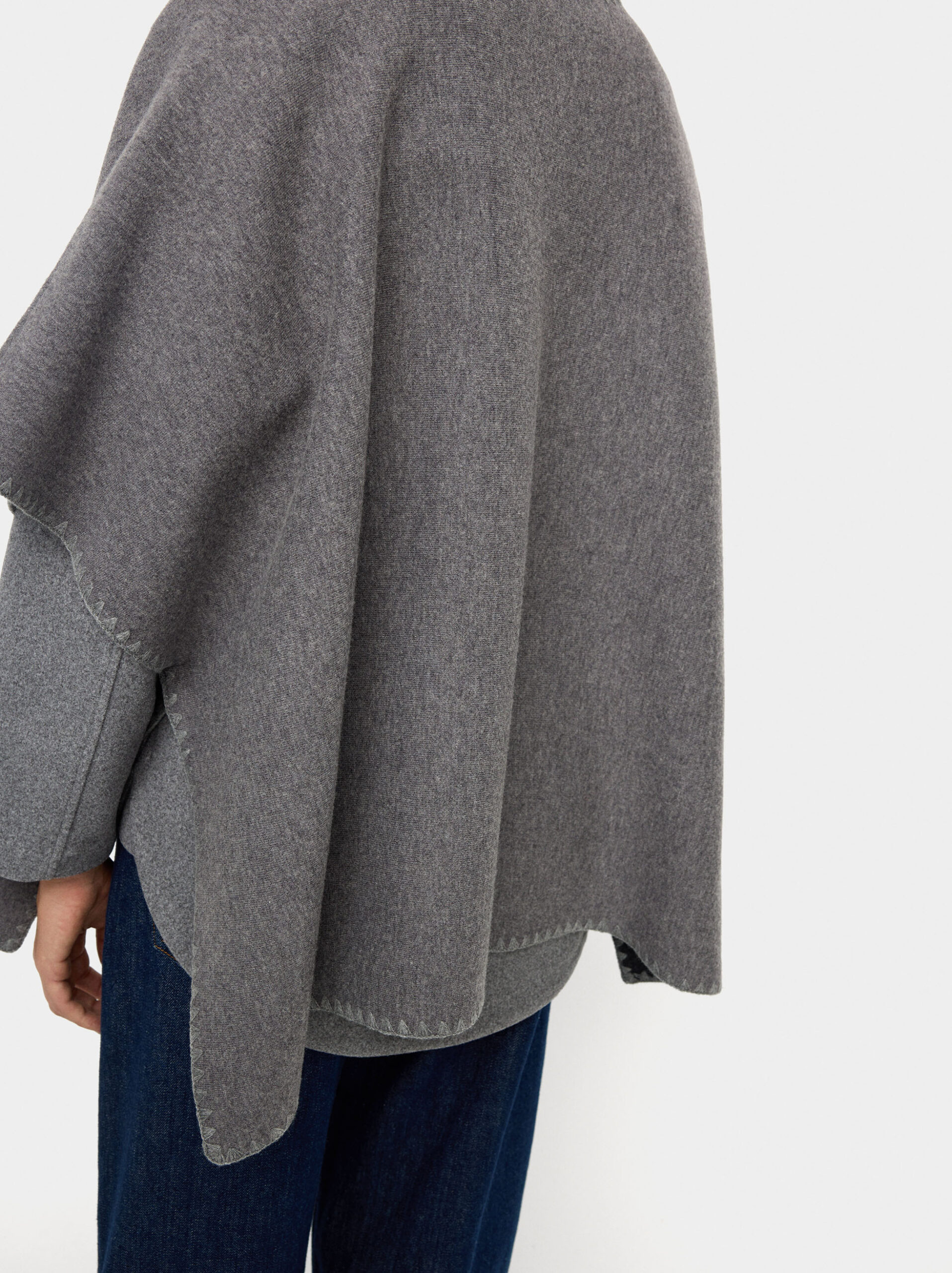 A relaxed knitted poncho highlighted by contrasting seam details that add subtle structure. Sized one-size-for-all, it offers easy layering and a flattering drape for varied silhouettes. Ideal for travel and transitional weather.