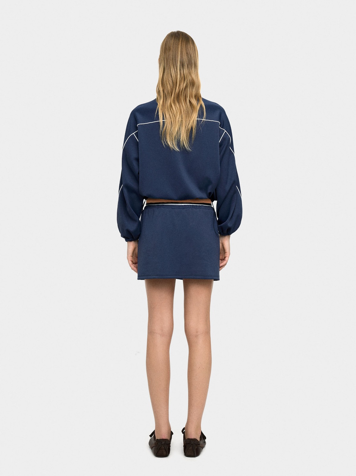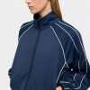 This padel jacket features contrast piping that adds dynamic visual interest and sporty appeal. Designed with a relaxed fit and lightweight construction, it provides comfort and mobility for everyday wear or athletic activities. Finished in a deep navy tone with coordinating piping, it pairs well with casual bottoms, activewear, or layered outfits. A versatile piece for transitional weather, this jacket combines performance-inspired styling with practical comfort and familiar design.