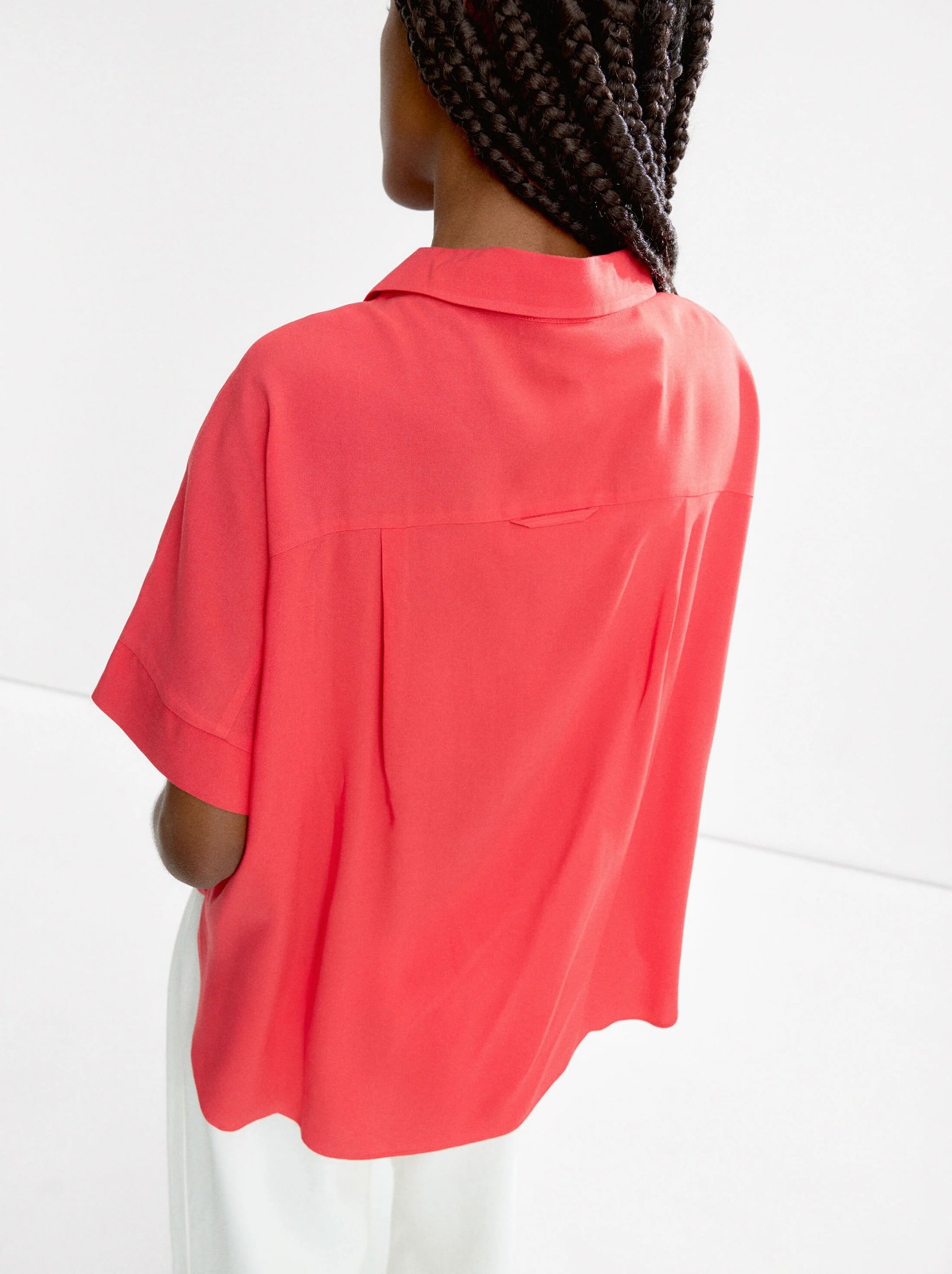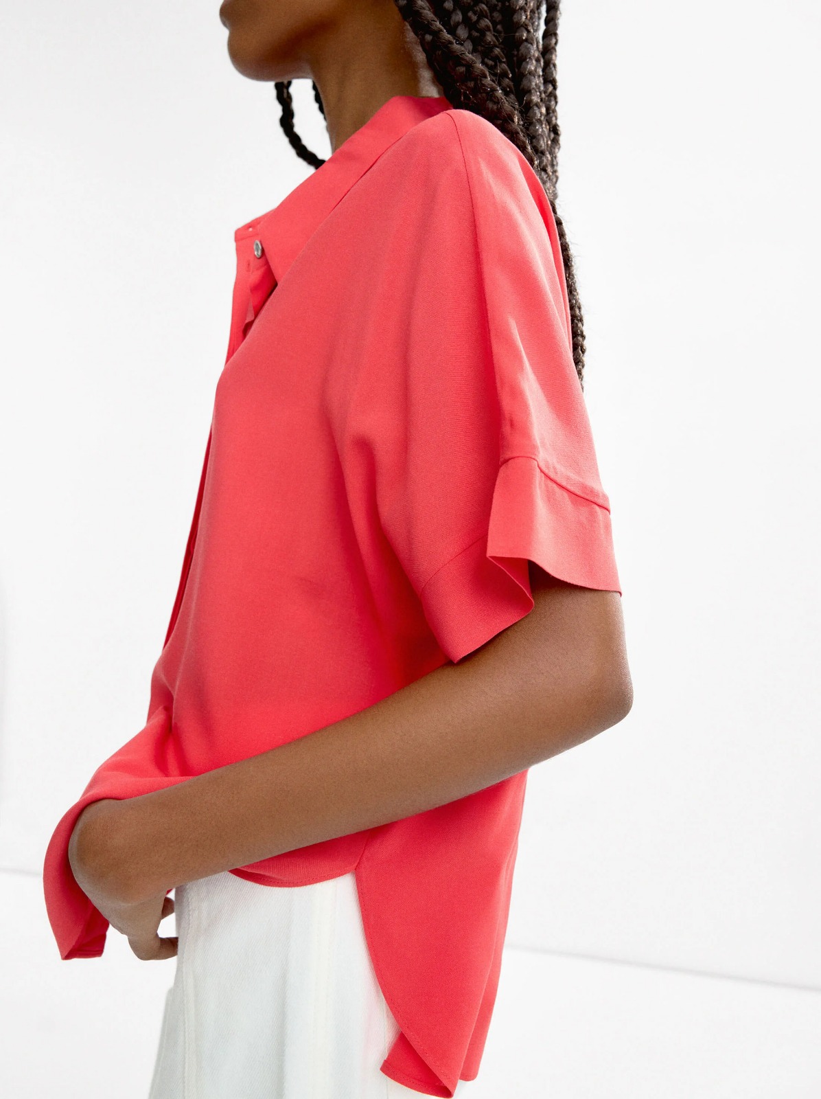 This short-sleeve shirt is designed with a relaxed fit and lightweight fabric for all-day comfort. The coral shade adds a fresh and vibrant touch while remaining easy to style. Ideal for summer wear, casual outings, or travel looks, it offers a balance of comfort, simplicity, and modern appeal.