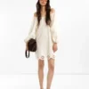White Off-Shoulder Pierced Embroidery Dress